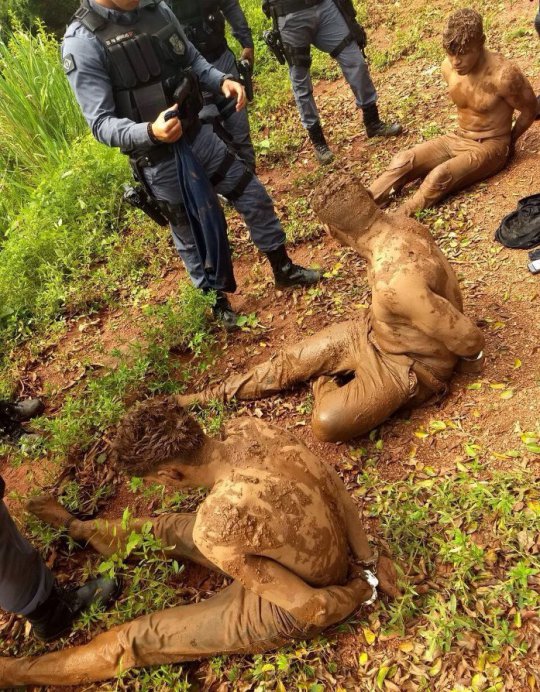 A quadrilha tentava fuga em direção ao município de Várzea Grande, região metropolitana de Cuiabá. Os assaltantes atiraram em direção aos policiais e mergulharam em um lamaçal. Com a ajuda de um helicóptero da PM, os policiais encontraram os ladrões imersos na lama depois de uma hora de busca.