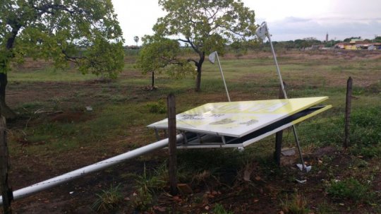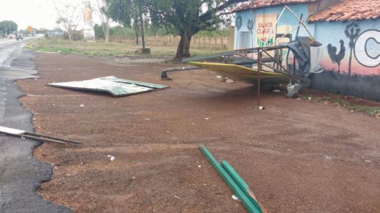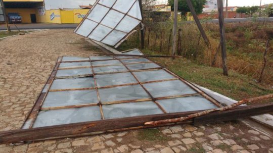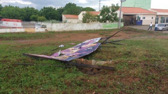 A rápida chuva que caiu em Campo Maior no início desta tarde, além de vir acompanhada de um fenômeno nada comum na região, que foi granizo, apresentou fortes pancadas de ventos que deixaram um rastro de destruição pela cidade. Várias placas de publicidades em diferentes pontos da cidade foram abaixo.