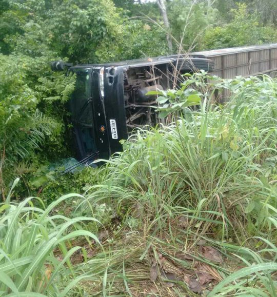 Um ônibus de placa HXA-4797 de Fortaleza-CE, tombou no início da tarde de ontem, sábado (13/01) na rodovia BR-135, no município de Passagem Franca-MA, região centro-leste do estado. Ônibus seguia para show na cidade, no Balneário Clube.