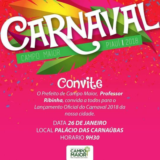 Depois de muita polêmica nas redes sociais sobre a possibilidade de não ter carnaval público em Campo Maior, a prefeitura municipal divulgará amanhã, sexta-feira, às 09:30hs no Palácio das Carnaubais, a programação oficial da folia de momo na “Terra dos Carnaubais”.