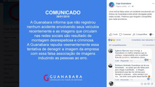 Um suposto acidente com um ônibus da empresa Guanabara, com dezenas de mortos, movimentou as redes sociais nesta sexta-feira. Já na tarde a própria empresa se manifestou através de sua página no facebook, desmentindo a informação.