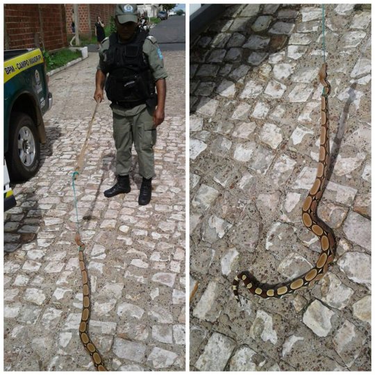 Nesta época chuvosa, é comum que animais, tais como cobras e aranhas, apareçam mais frequentemente, por isso, o cuidado deve ser redobrado. A polícia fez a captura do animal e a deslocou até um matagal, para que esta possa ser incorporada novamente ao seu habitat natural. A jiboia é uma das várias espécies de serpentes pertencentes ao território brasileiro que não possuem peçonha, então, quando as virem, não mate, capture e solte em algum lugar longe de sua residência.