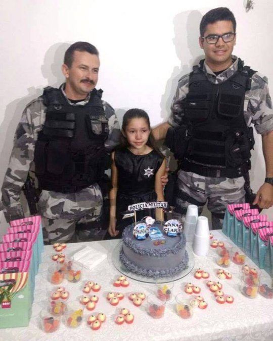 Na noite da última sexta-feira (16/02), durante seu aniversário, policiais da força tática chegaram à casa da garota na viatura oficial com giroflex ligado e ajudaram a cantar os parabéns. A menina não se conteve a foi às lágrimas. Os policiais foram ao local a pedido do Comandante do 15º Batalhão, Major Etevaldo, que recebeu o pedido do pai de menina, o funcionário público Jefferson Lima.