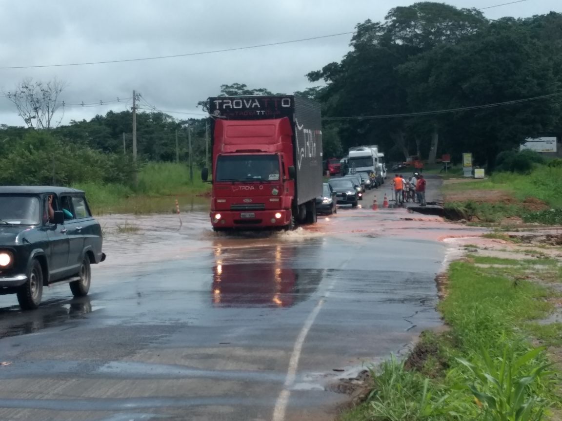 Segundo a Polícia Rodoviária Federal, a pista foi interditada ainda nas primeiras horas da manhã de hoje por conta do grande volume e força da água, que até o momento já levou consigo uma parte do asfalto.