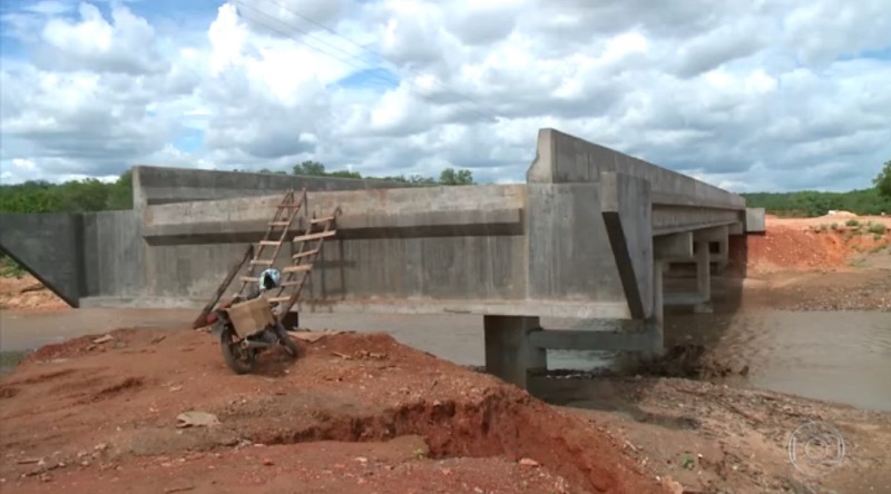Essa é uma obra que os moradores da região aguardam há mais de duas décadas. O povo do local até ficou animado quando viu a ponte toda erguida, só que essa alegria durou pouco, porque em dezembro de 2017 a obra parou, aí para ter acesso à ponte, só improvisando.
