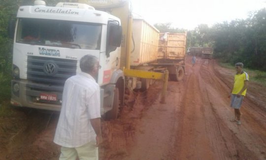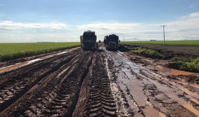 O caos está configurado em imagens de atoleiros, mesmo em estradas em parte já pavimentadas como a PI-392, no município de Baixa Grande do Ribeiro, onde são esperadas 862 mil toneladas de grãos neste ano.