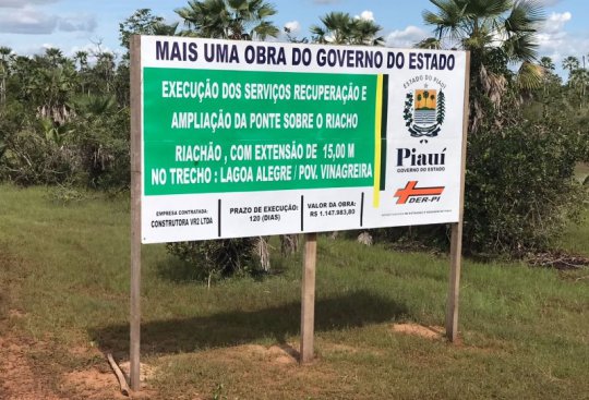 Os recursos foram destinados por um termo de aditamento que prevê a construção de uma ponte de 15 metros no trecho da PI-339 que compreende a cidade de Lagoa Alegre e o Povoado Vinagreira.