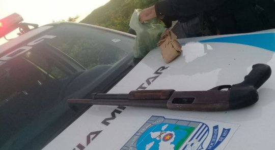 No carro, a polícia encontrou duas armas de fogo, um Fúzil 556 e um espingarda cal. 12, além de munições.
