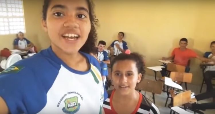 Uma das alunas relata que o “Brasil que queremos” é o que a “educação seja prioridade”. Em outro momento, outra estudante pede que as escolas tenham mais estrutura e que os alunos não precisem levar os ventiladores para a escola.