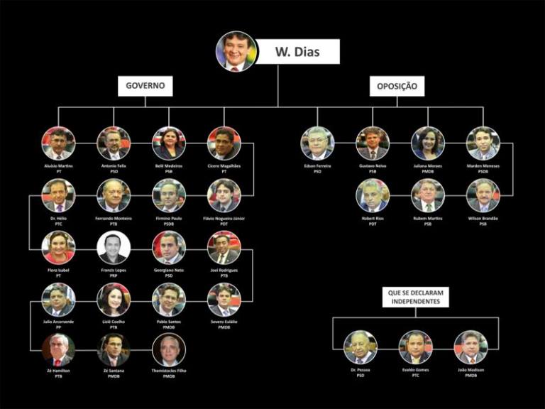 Tentar definir a oposição no Estado fica mais difícil quando o PMDB, partido do principal adversário do governador Wellington Dias durante a eleição de 2014, o ex-governador Zé Filho (PMDB), é hoje a legenda que negocia e ajuda o governo a aprovar as propostas com a participação direta do presidente da Casa, deputado Themístocles Filho (PMDB). Para aprovar qualquer projeto, Wellington sempre recorre a ajuda de Themístocles.