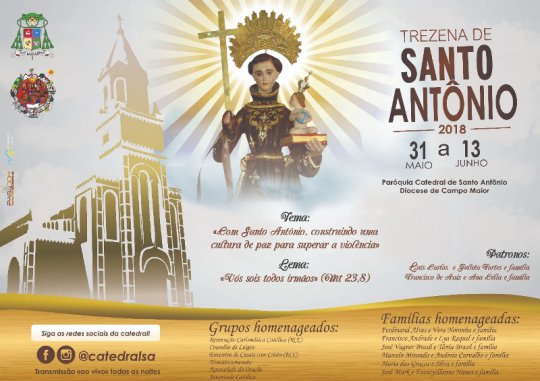 DIA 13 DE JUNHO – QUARTA-FEIRA – SOLENIDADE DO PADROEIRO