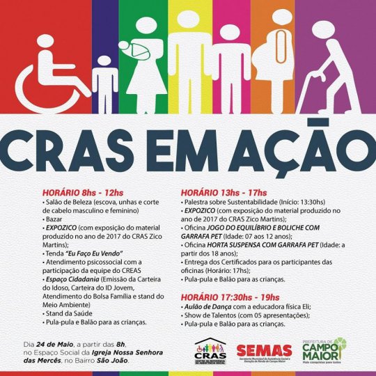 A Secretaria de Assistência Social de Campo Maior, por meio do Centro de Referência de Assistência Social – CRAS municipal, promoverá nesta quinta-feira (24/05) um dia exclusivo voltado à realização de atividades social no bairro São João.