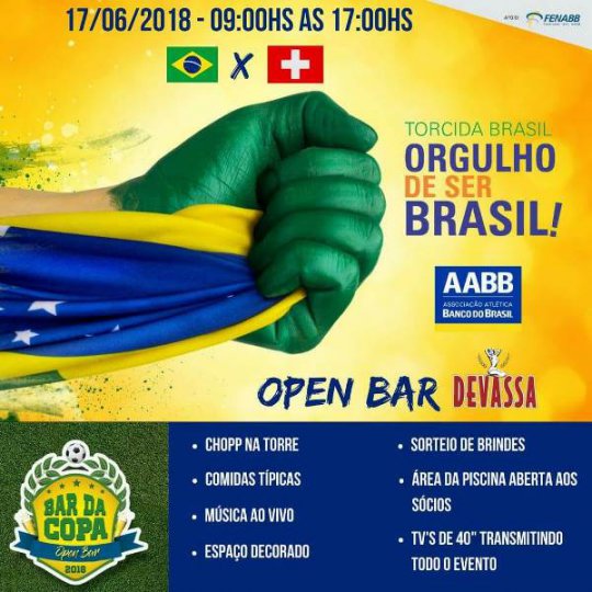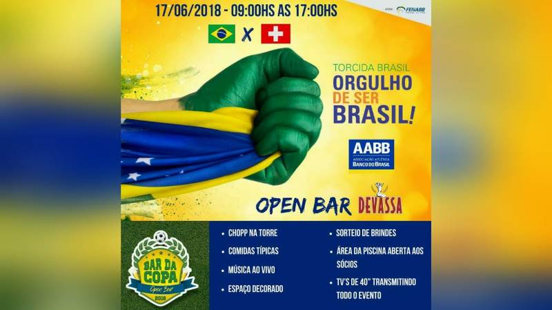 O primeiro jogo da Seleção Brasileira na Copa do Mundo 2018 acontece no próximo dia 17 de junho contra a Suíça e a AABB de Campo Maior estará realizando um festival de Chopp que iniciará às 09h da manhã.