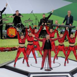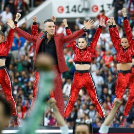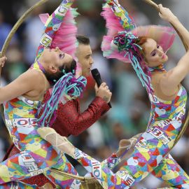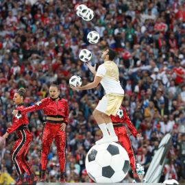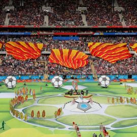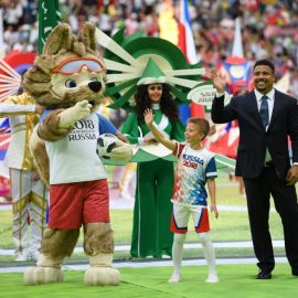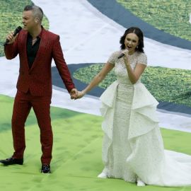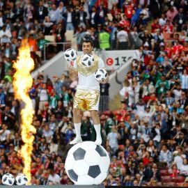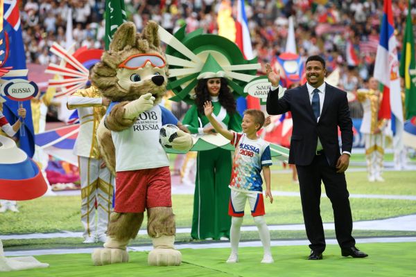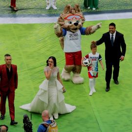A apresentação antes da partida entre Rússia e Arábia Saudita teve show de Robbie Williams com participação da soprano russa Aida Garifullina.
