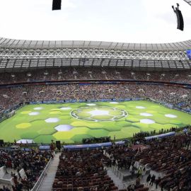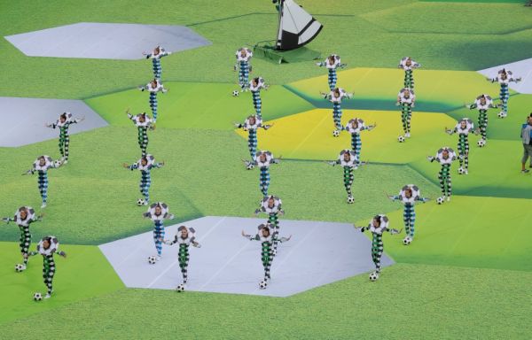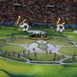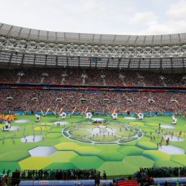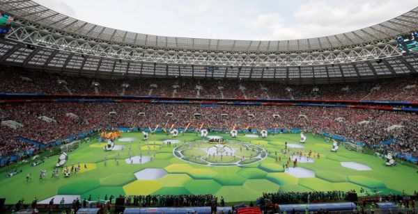 A abertura da Copa do Mundo em Moscou, no estádio Luzhniki, nesta quinta-feira (14), teve rápida participação de Ronaldo e show que uniu pop inglês e russo.