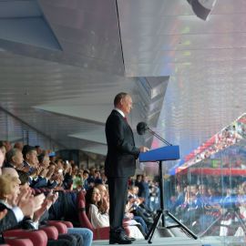 O presidente da Fifa, Gianni Infantino, e o presidente da Rússia, Vladimir Putin, discursaram brevemente dando as boas vindas aos torcedores e espectadores.