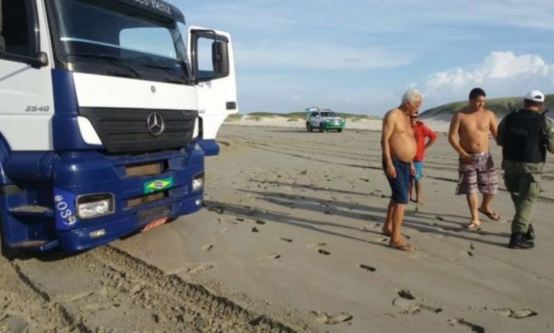 O motorista tinha deixado a carga do caminhão em um comercio de Parnaíba e resolveu passear com veículo pela orla da Atalaia. Uma guarnição da divisão de trânsito da CIPTUR sob comando do subtenente Sales, orientou o motorista a não andar com o veículo por aquela área da orla, por conta de risco de atolamento.
