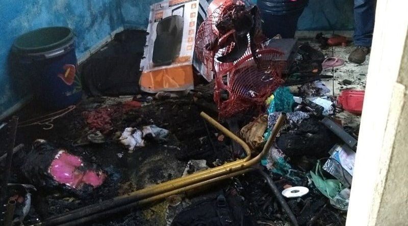 A Polícia Militar informou que o incêndio começou por volta de 4h da madrugada e a residência ficou praticamente destruída. O fogo iniciou dentro do quarto de um casal que foram identificados como Carla Pereira de Abreu, de 25 anos e Luís Pereira Gonzaga, de 54 anos.