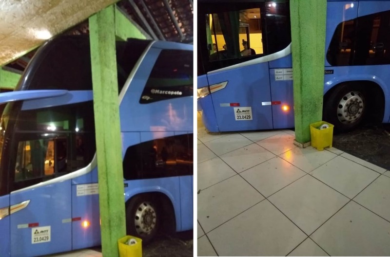 Segundo populares que estavam no local, o motorista tentava sair com o ônibus e ao invés da marcha ré, colocou uma primeira. O ônibus subiu parte da plataforma do terminal e ficou com a parte do teto parcialmente preso no terminal.