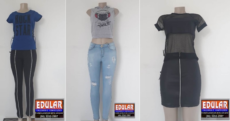 A Edular informa que recebeu vários lançamentos em confecções. Venha nos fazer uma visita e confira. A Edular parcela tudo em até 06x sem juros no crediário próprio ou em todos os cartões de crédito.