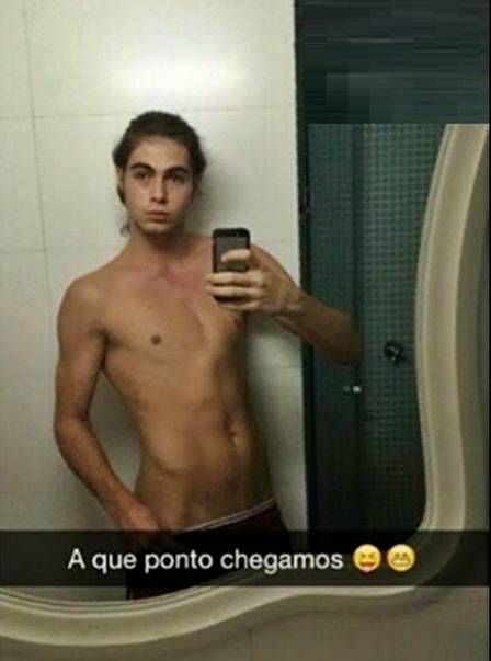Mas esta não é aprimeira foto do galazinho da globo. No final de maio deste ano ele mexeu com a imaginação das fãs ao publicar outra foto no Snapchat. O jovem sensualizando no banheiro de casa, com direito a abaixadinha na cueca e a frase “A que ponto nós chegamos”.