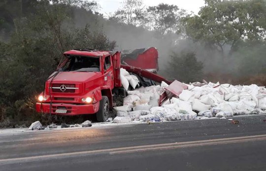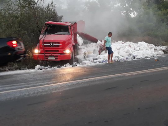 Um caminhão carregado de açúcar tombou por volta da 06:20 da manhã desta terça-feira no km 299 da BR-343, entre Altos e Campo Maior. Segundo o Policial Rodoviário Edgar, do Posto de Campo Maior, o acidente teria ocorrido pela ultrapassagem indevida, mas não soube informar se foi o caminhão ou de outro veículo.