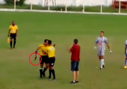 Uma partida de futebol amador em Brumadinho, na Região Metropolitana de Belo Horizonte-MG, terminou em confusão neste fim de semana. A partida entre Amantes da bola e Brumadinho era válida pela Liga de Futebol Amador de Brumadinho. O árbitro foi agredido por um jogador e reagiu armado.