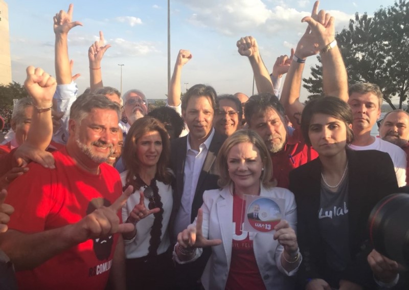 Foram ao quinto andar do tribunal para efetuar o registro a presidente do PT, senadora Gleisi Hoffmann; a ex-presidente Dilma Rousseff; o ex-prefeito Fernando Haddad e a deputada Manuela D´Avila, que desistiu da candidatura a presidente pelo PCdoB para ser vice na chapa do PT depois que o TSE julgar a candidatura de Lula.