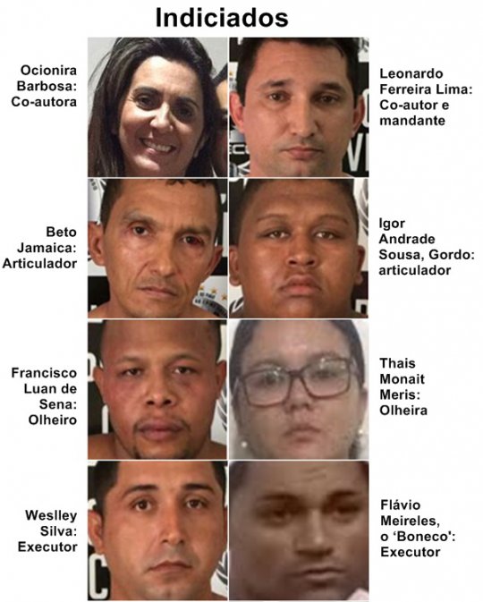 A peça do MP defende que, temendo que a reaproximação prejudicasse sua relação amorosa e financeira, os acusados planejaram o homicídio e ofereceram R$ 20 mil aos executores. A negociação foi intermediada pelo acusado José Roberto Leal da Silva, conhecido como Beto Jamaica, que contratou Weslley Marlon Silva, Francisco Luan de Sena e Igor Andrade de Sousa para a execução.