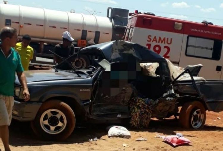Uma colisão do tipo lateral envolvendo um caminhão tanque e uma Pick Up modelo MAZDA B2200, deixou uma pessoa morta e duas feridas, no início da tarde desta quinta-feira na BR-343, em frente ao Posto Altos II, entre Altos e Campo Maior. Um dos feridos é uma criança.
