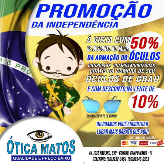 As lojas da Ótica Matos estão com uma promoção incrível para a esta semana. É a Promoção da Independência.