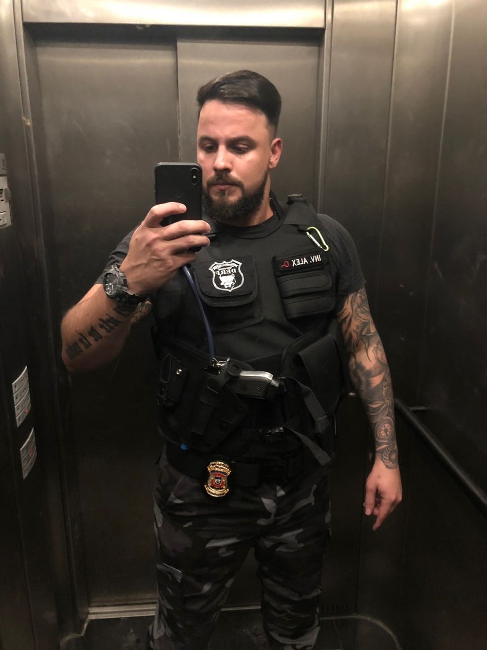 Airton Alex Nunes, de 26 anos, conhecido como Alex Bafo, começou a ser investigado depois que fotos dele circularam em aplicativos e redes sociais. Nas imagens, ele aparece vestido de policial e se exibe com armas e coletes.