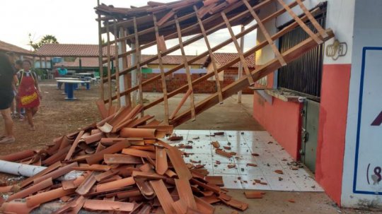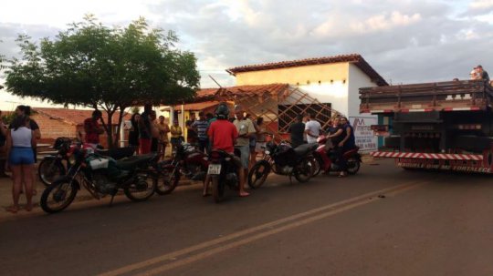 Um vídeo mostra o momento em que o motociclista perde o controle do veiculo e colide contra uma coluna de concreto, que servia de sustentação para uma área aberta de um bar. Com a força do impacto, parte da construção desabou.