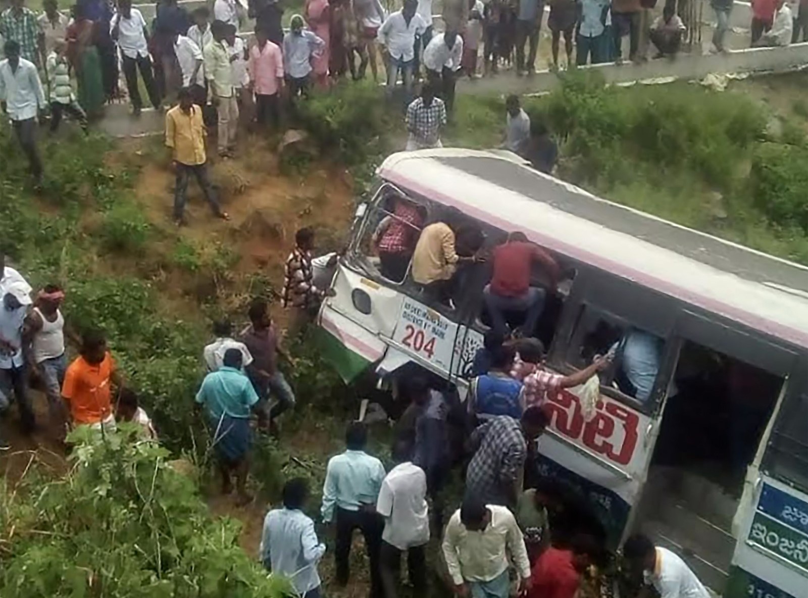 O veículo saiu da pista no distrito de Jagtial, 150 km ao norte de Hyderabad, a capital regional. O ônibus transportava peregrinos que retornavam de um templo hindu, segundo a imprensa indiana.