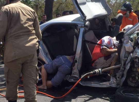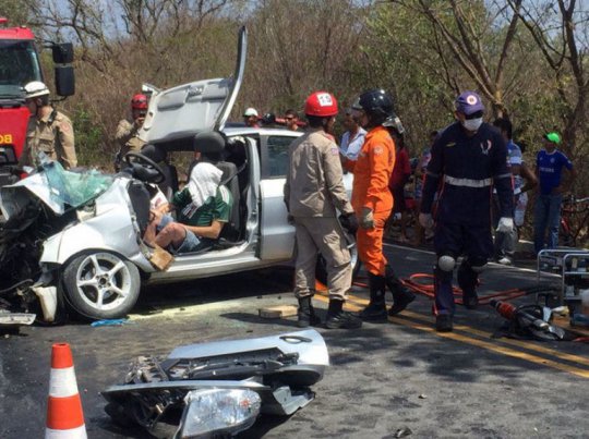 Um casal ficou ferido na Hillux e outras duas pessoas no Voyage, onde estavam as v?timas fatais. Os corpos de Eug?nio de Jesus Soares, Jo?o Batista Pereira e Neuza Nunes Soares foram levados para o Instituto M?dico Legal de Timon.?