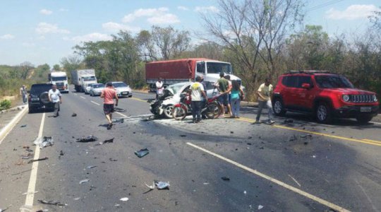 A colis?o envolveu uma Hillux preta com placa OIC-9268, de Capit?o Po?o (PA) e um Voyage branco de placa NIQ-6679, de Teresina (PI). Os ve?culos trafegavam por um trecho de tr?s pistas da rodovia, distante oito quil?metros da zona urbana de Timon. O acidente ocorreu por volta de 11h30 da manh?.?