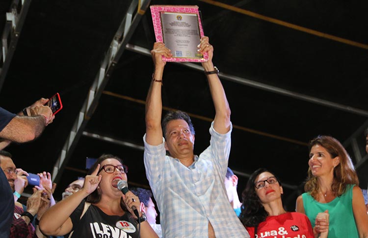 "Neste segundo turno existem dois projetos: o do miliciano que quer continuar o governo Temer aprovando medidas impopulares e antinacionais e o resgate de um projeto de futuro representado pelo Lula e que vai retomar o desenvolvimento no dia 1º de janeiro de 2019", afirmou Haddad que foi aplaudido pelo público.