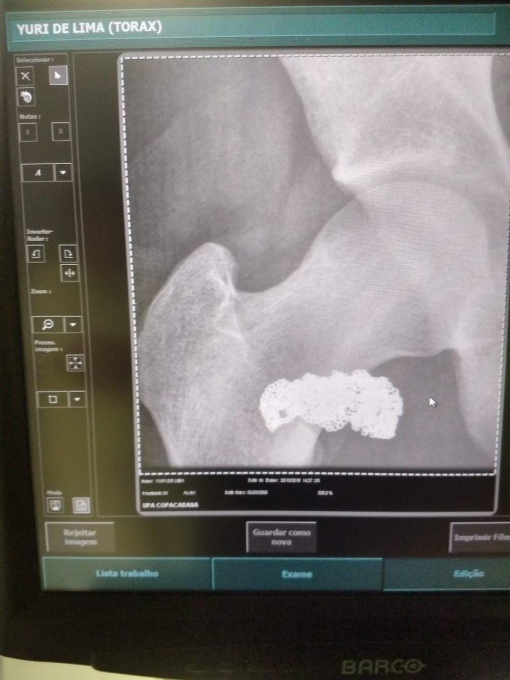 A polícia decidiu levar o autor do roubo para um exame na UPA de Copacabana onde a ressonância mostrou uma mancha, próxima do seu abdômen. Com o zoom, ficou claro que era o cordão.