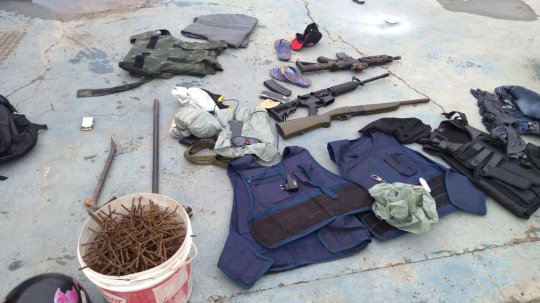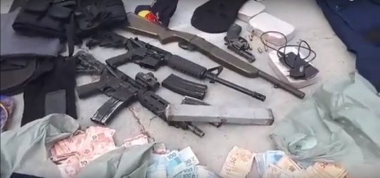 No local, a polícia encontrou um arsenal de arams, drogas, dinheiro, dinamite e outros objetos. Uma hillux utilizada no assalto também estava na casa na chácara.