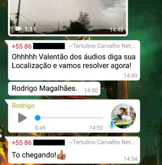 A discussão chegou ao ponto dos dois marcarem local para se encontrar. “Valentão dos áudios! Diga sua localização e vamos resolver agora. Estou chegando” diz o policial, que foi respondido pelo rapaz. “Vamos já já marcar. Você pode vir aqui na casa do Adalto da Maricota. Estou lhe esperando...” disse o rapaz.