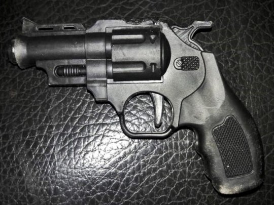 Diante do flagrante, ambos informaram que acharam a arma ali mesmo, que ao chegarem ao local já estava lá. Ao verificar a arma se tratava ser de brinquedo. Ambos foram levados para a Central de Flagrantes.
