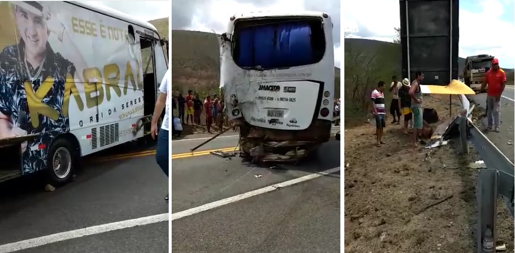 Um acidente envolvendo o ônibus do cantor piauiense Kabral, na tarde desta sexta-feira na BR-16, no município de Jequié-BA, deixou uma pessoa morta e outra gravemente ferida. As informações ainda são desencontradas, mas um dos integrantes da banda gravou vídeos e contou a situação de momento.