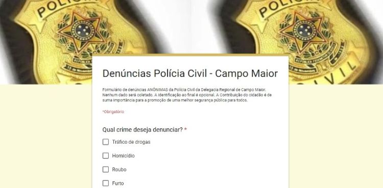 A população das cidades de Campo Maior, Jatobá do Piauí, Sigefredo Pacheco e Nossa Senhora de Nazaré, circunscrição da 5ª Delegacia Regional de Campo Maior já pode se comunicar direto com a polícia atrás de um formulário eletrônico.