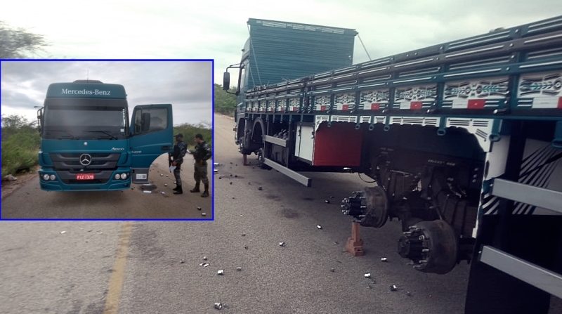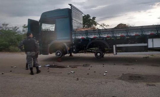 Mais um sequestro seguido de roubo na cidade de Jacobina do Piauí. A Força Tática de Paulistana recebeu a informação na sexta-feira (30), de que havia no acesso à barragem de Patos – PI, nas proximidades da BR-407, um caminhão modelo MB Atego 2426 azul, PIZ-1379 Teresina-PI, do qual haviam sido retiradas todas as rodas do veículo.