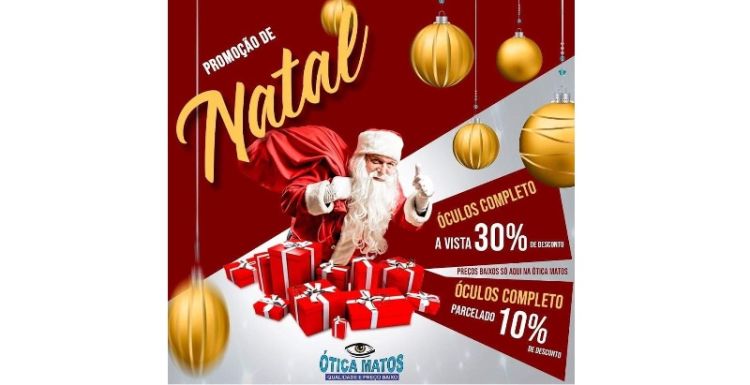 A Ótica Matos tem tradição em grandes promoções e lançou a promoção de natal onde cada cliente terá desconto de 30% na compra do óculos completo e na compra parcelada tem 10% de desconto.