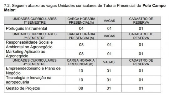 O Serviço Nacional de Aprendizagem Rural do Piauí (SENAR-PI) abriu inscrições para credenciamento de profissionais no desenvolvimento de Ações de Tutoria Presencial da Rede eTec para integrar o cadastro de Prestadores de Serviços do SENAR AR/PI, nos polos de Teresina, Campo Maior, Guadalupe e Parnaíba.