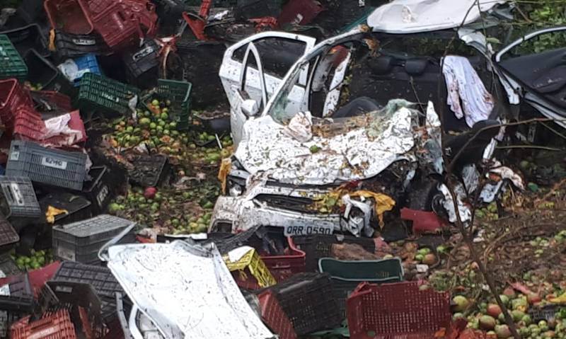 De acordo com o sargento Cardoso, do 18º Batalhão da Polícia Militar do Piauí, o caminhão seguia de Floriano para Teresina quando a carga tombou sobre o Õnix, que se deslocava no sentido oposto. No carro pequeno havia um casal de idosos, que morreu na hora, e uma terceira pessoa, que foi socorrida em estado grave pelo Serviço de Atendimento Móvel de Urgência (Samu) e encaminhada ao Hospital de Urgência de Teresina (HUT).