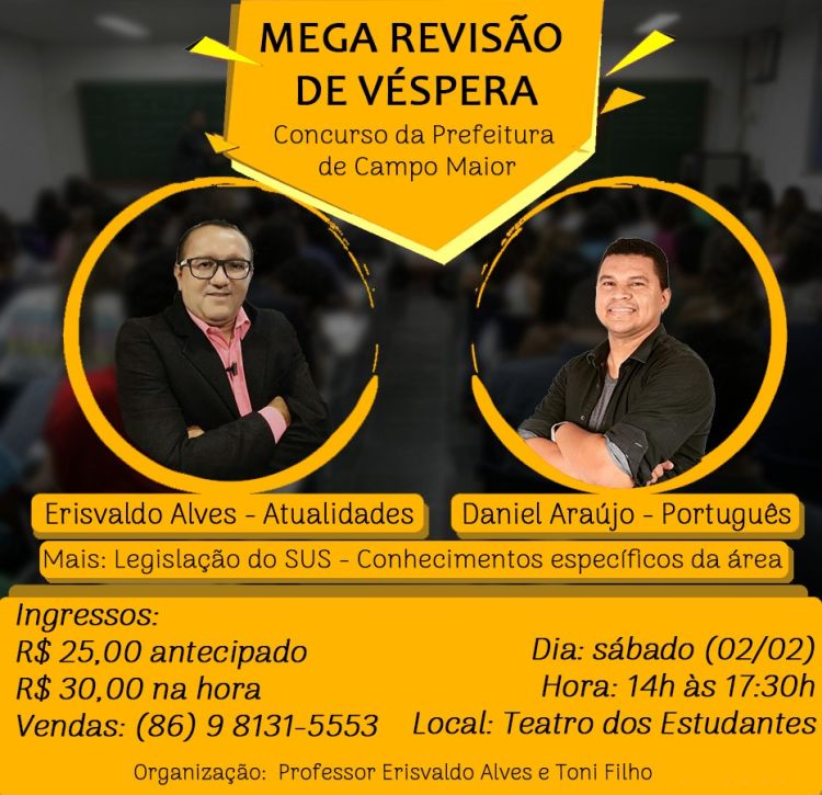 A revisão vai acontecer sábado, dia (02) a partir das 14:00hs no Teatro Sigefredo Pacheco conhecido como Teatro dos estudantes, com os melhores professores dos preparatórios de Teresina.