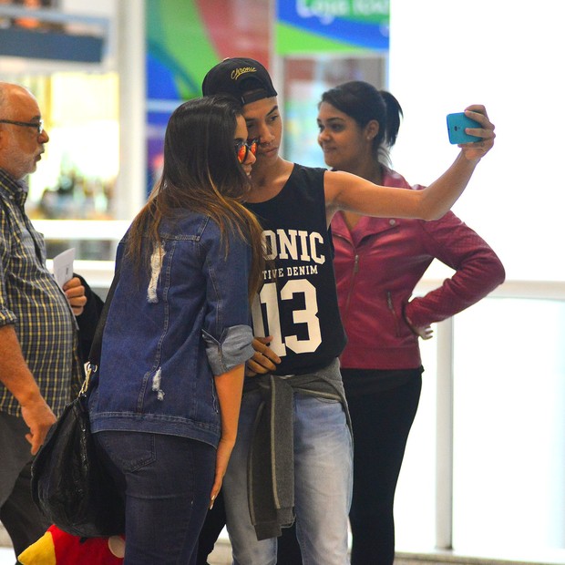 Acha que Anitta conseguiu circular livre, leve e solta pelo Aeroporto Santos Dumont, Centro do Rio, na manhã desta terça-feira, 6? Jamais! Ao ser reconhecida por fãs, ela foi cercada pelos admiradores que pediram selfies e beijinhos da funkeira. Como sempre simpática, Anitta não os decepcionou e atendeu a todos retribuindo o carinho.