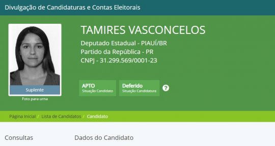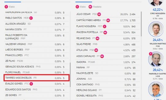 Tamires tirou apenas 44 votos em todo o Piauí e apenas 5 na sua cidade natal. Mesmo assim foi a segunda candidata do PR a receber mais recursos